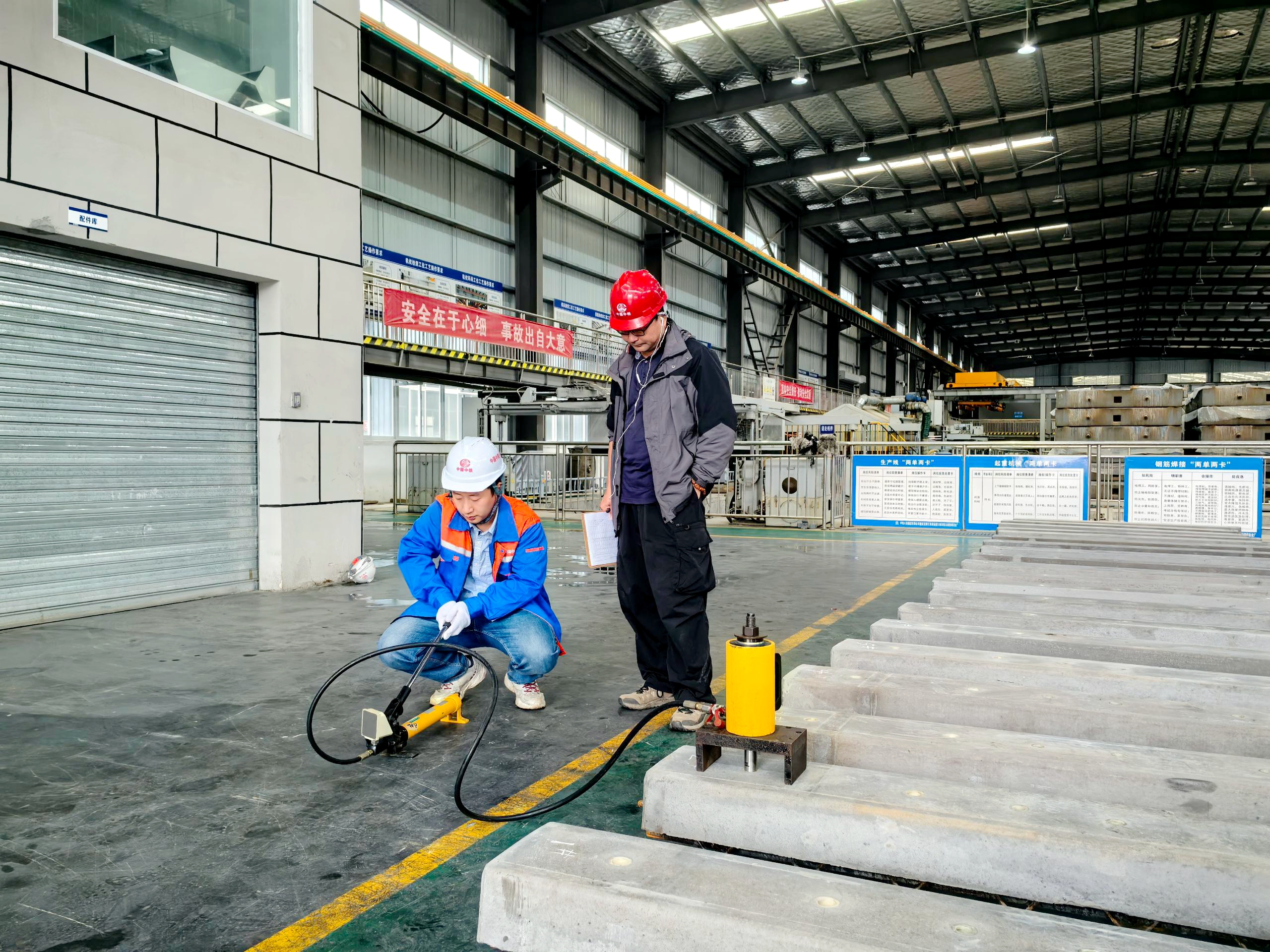 此次检验覆盖有砟过渡段混凝土枕、无砟过渡段混凝土枕、无砟轨道混凝土岔枕三类核心产品,共计181根,全面覆盖渝万高铁建设关键用枕需求。检验过程中,专家组严格遵循相关国家及行业标准规范,对岔枕产品开展全方位、高标准检测,重点完成静荷载试验、扣件预埋件抗拔力、强度弹模试验以及外形尺寸精度、外观质量等关键指标的逐项核查。经系统检测,三类岔枕产品的各项性能指标均完全符合产品标准及工程设计要求。